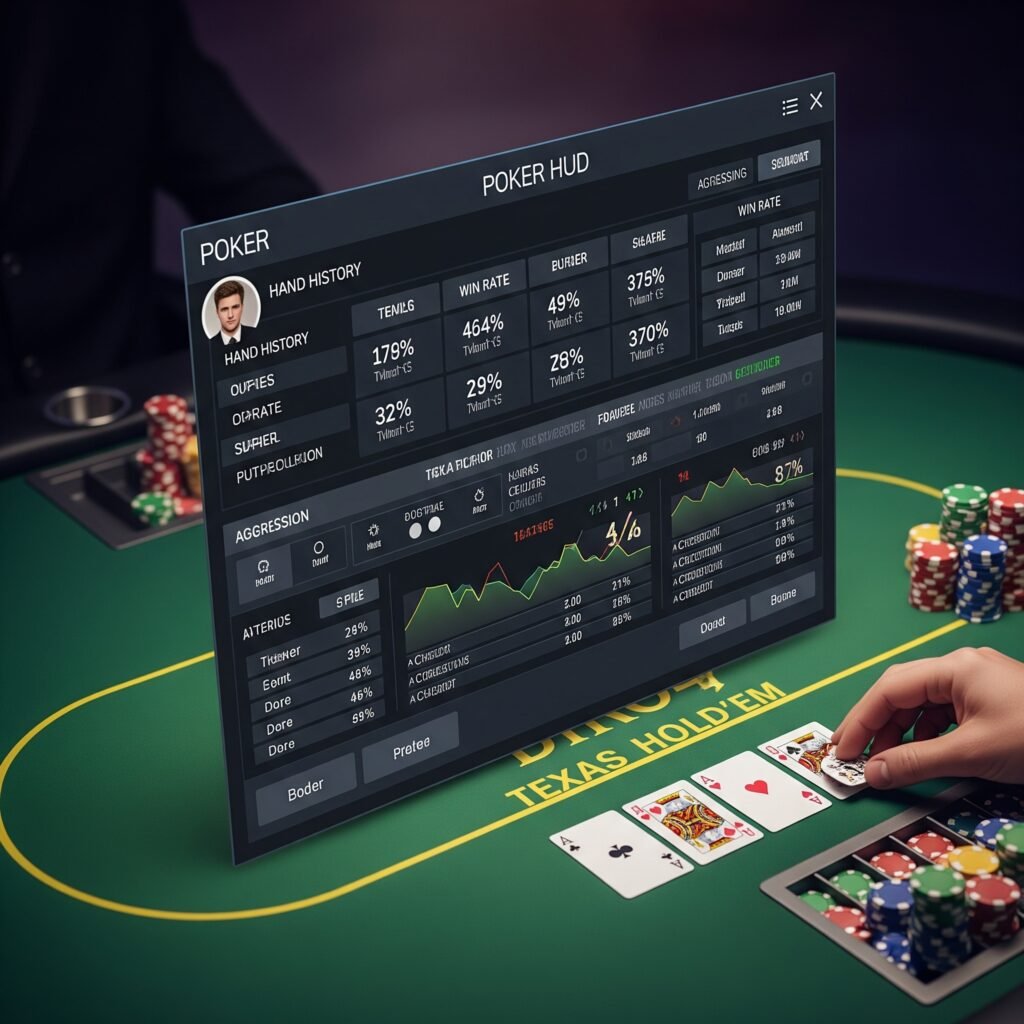 HUD คือซอฟต์แวร์เสริมที่ทำงานร่วมกับโปรแกรมโป๊กเกอร์ออนไลน์ของคุณ มันจะดึงข้อมูลจากฐานข้อมูลของ Hand History ที่คุณเล่นหรือสังเกตการณ์มาแสดงผลเป็นตัวเลขสถิติบนโต๊ะทันทีเหนือชื่อของคู่ต่อสู้แต่ละคน